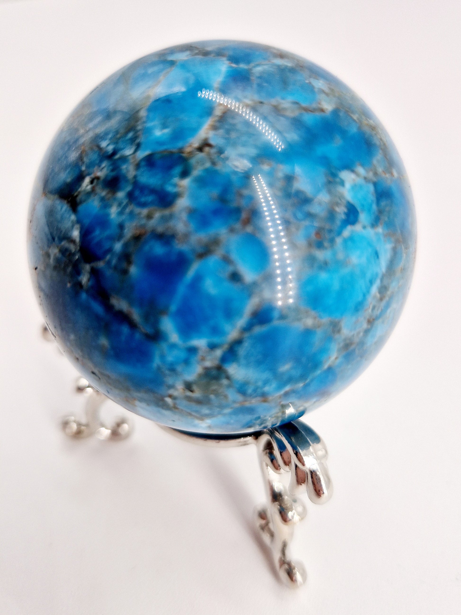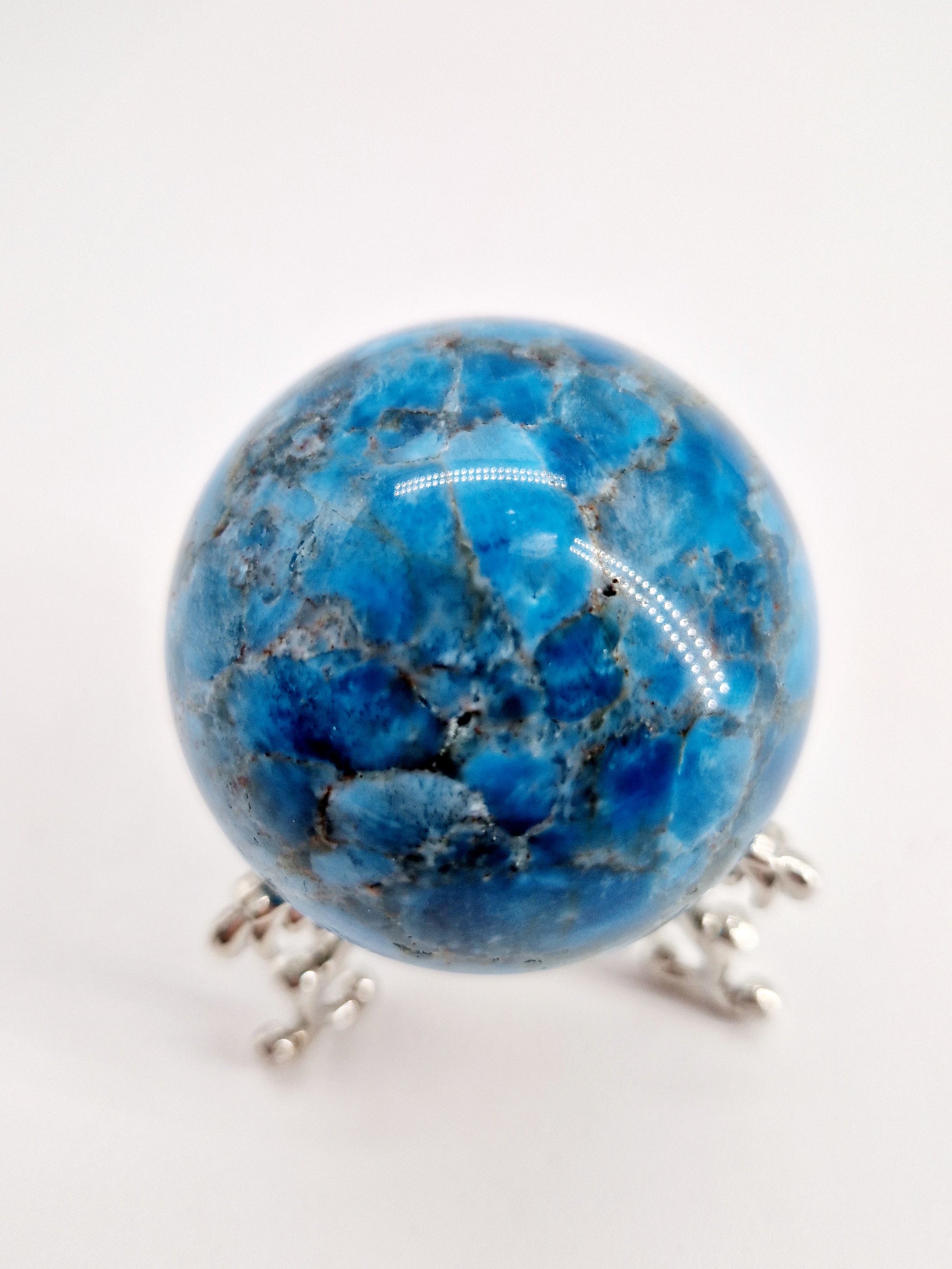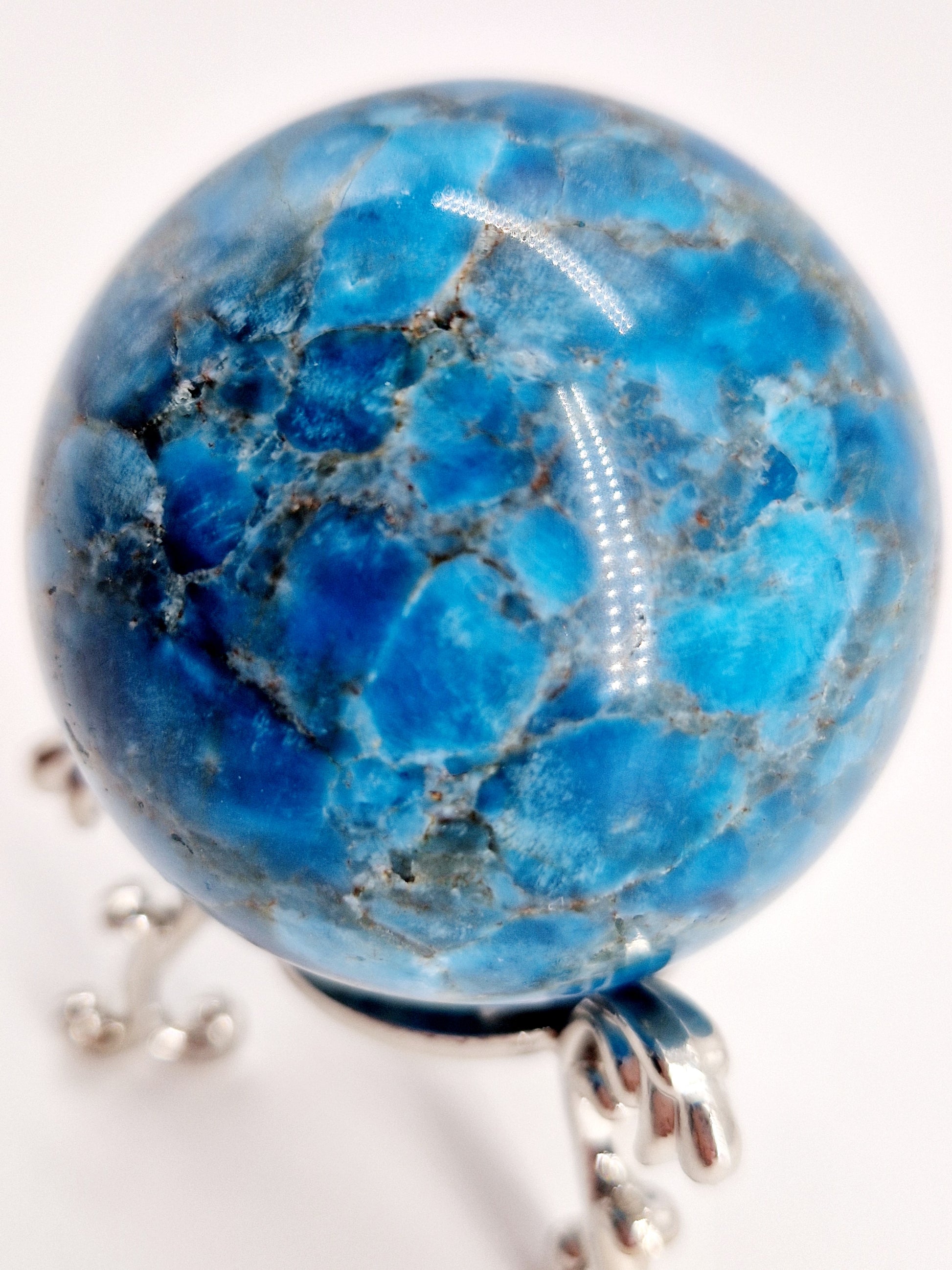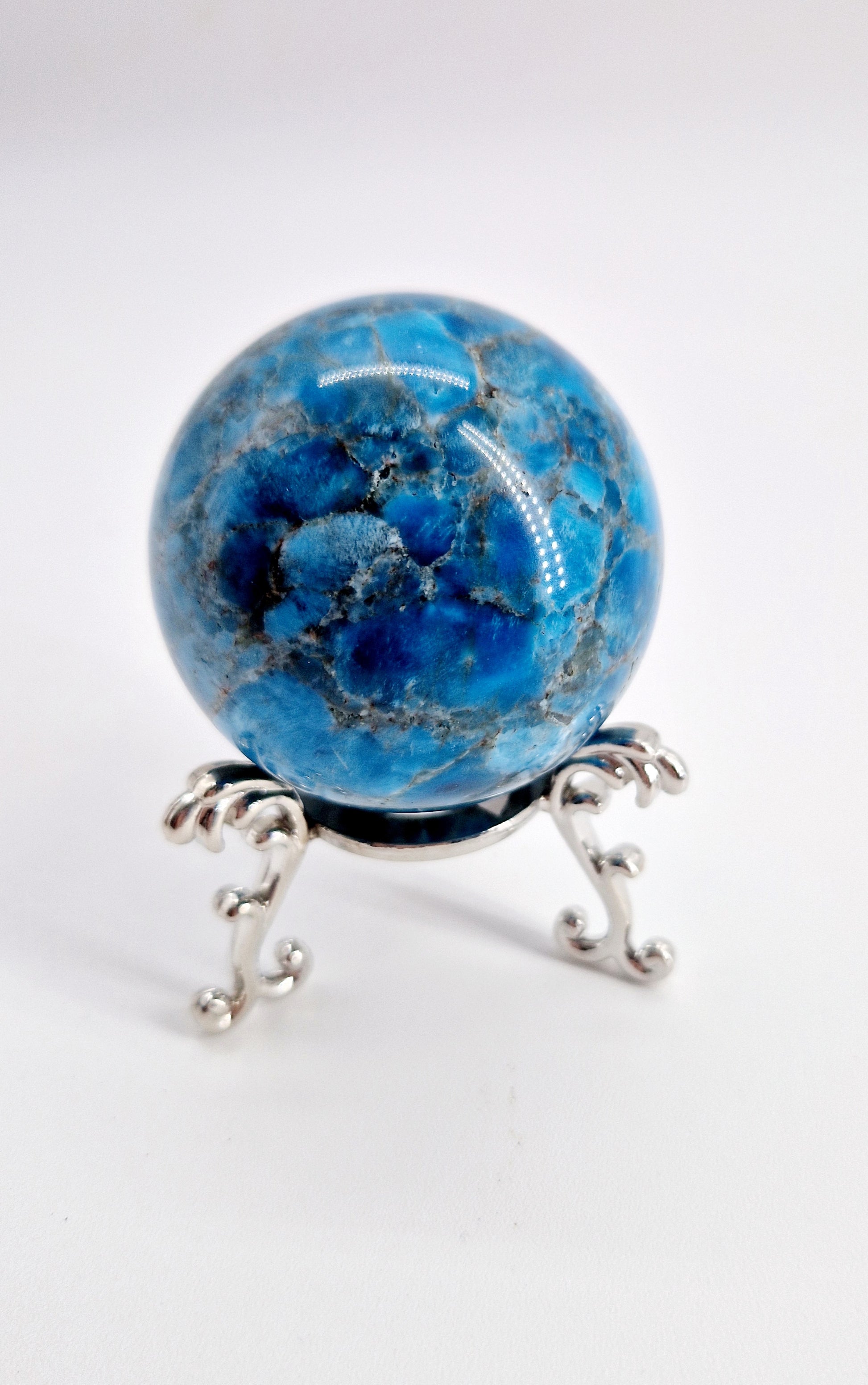 Enhance your mental focus and clarity with this blue apatite sphere. This vibrant stone promotes intellectual stimulation, manifestation, and spiritual awareness. Perfect for students, professionals, or anyone seeking mental clarity.