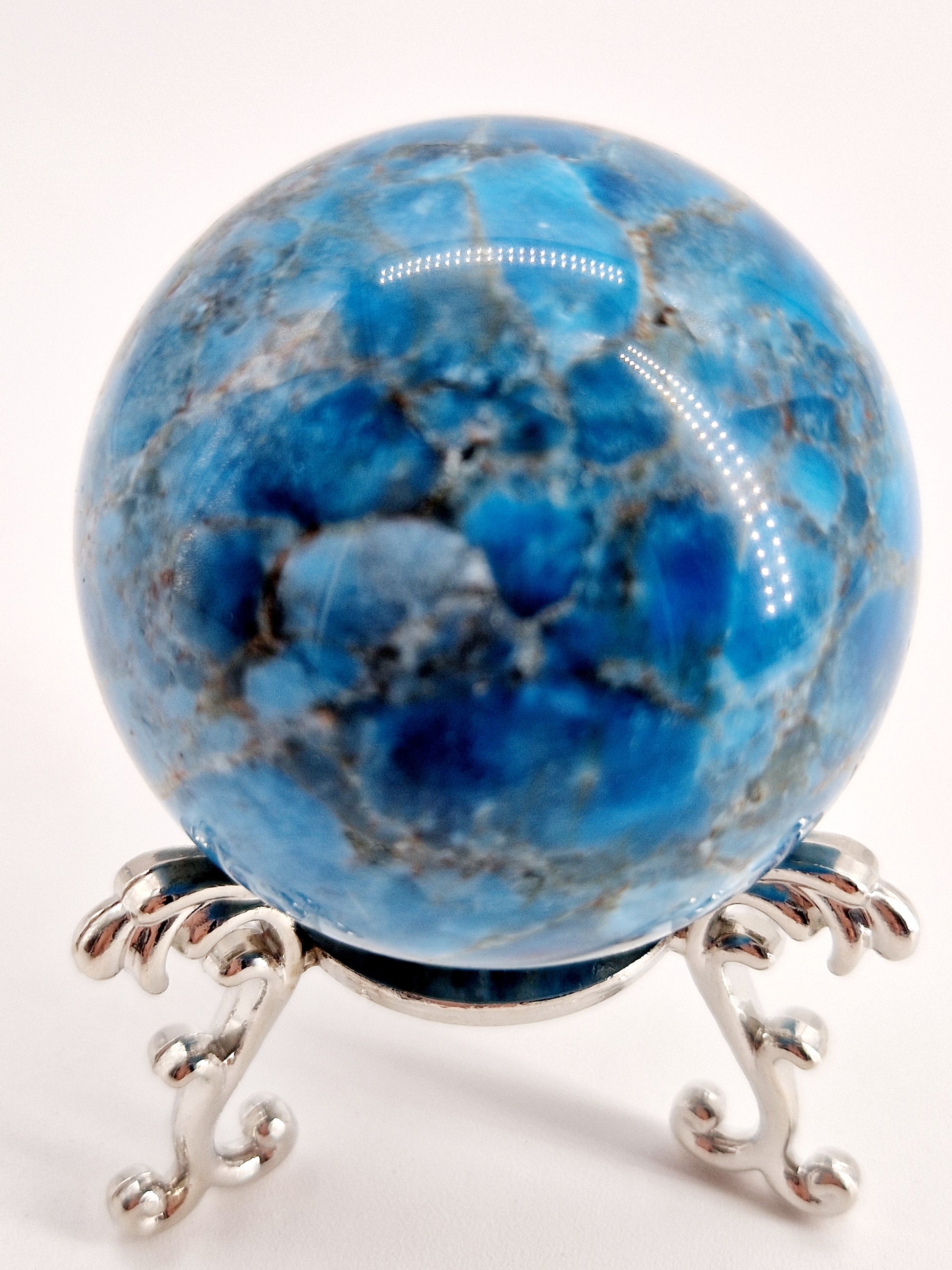 Discover the visionary clarity of this stunning blue apatite sphere.