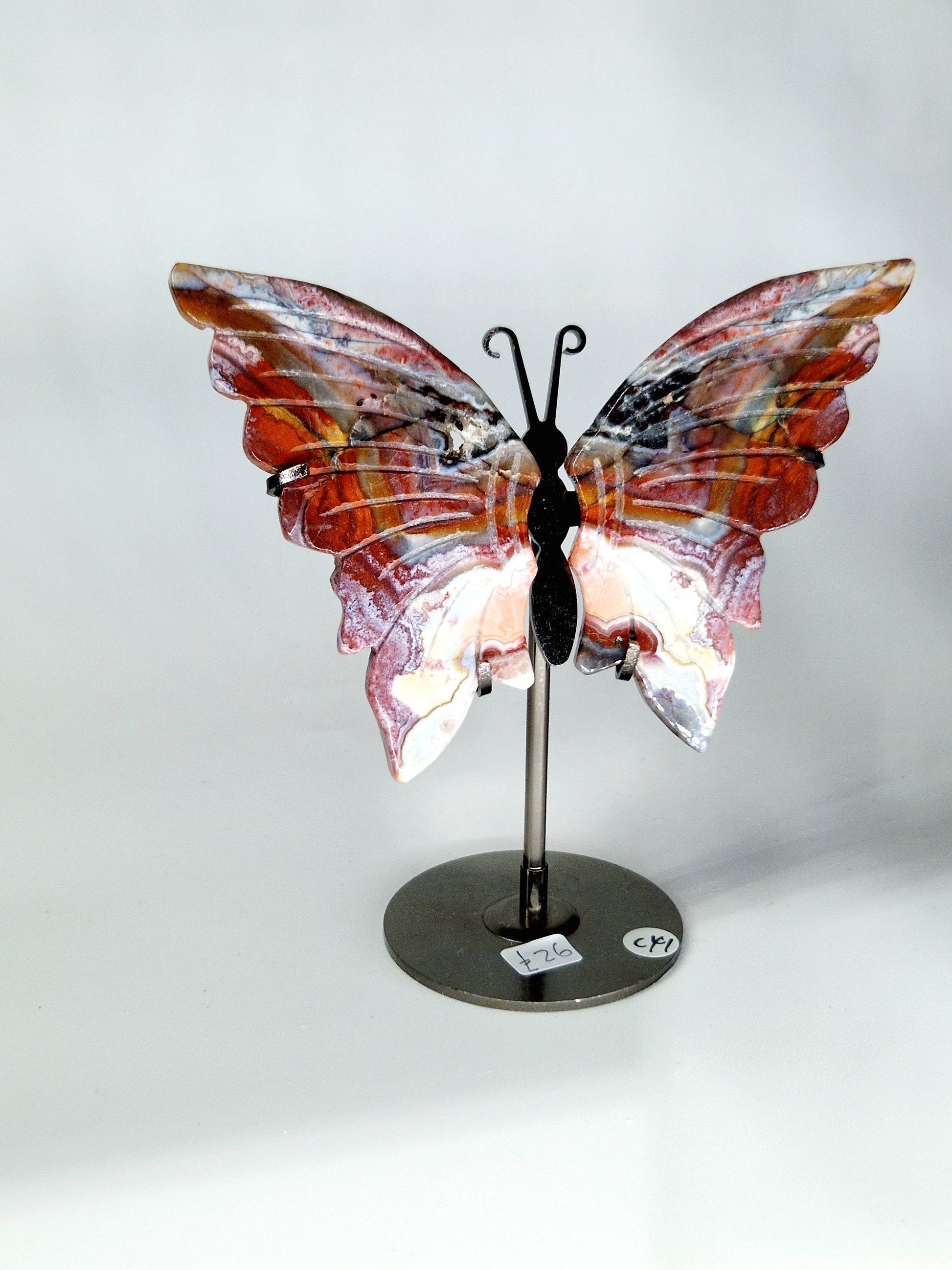 Hand-Carved Mexican Crazy Lace Agate Wings on Butterfly Stand