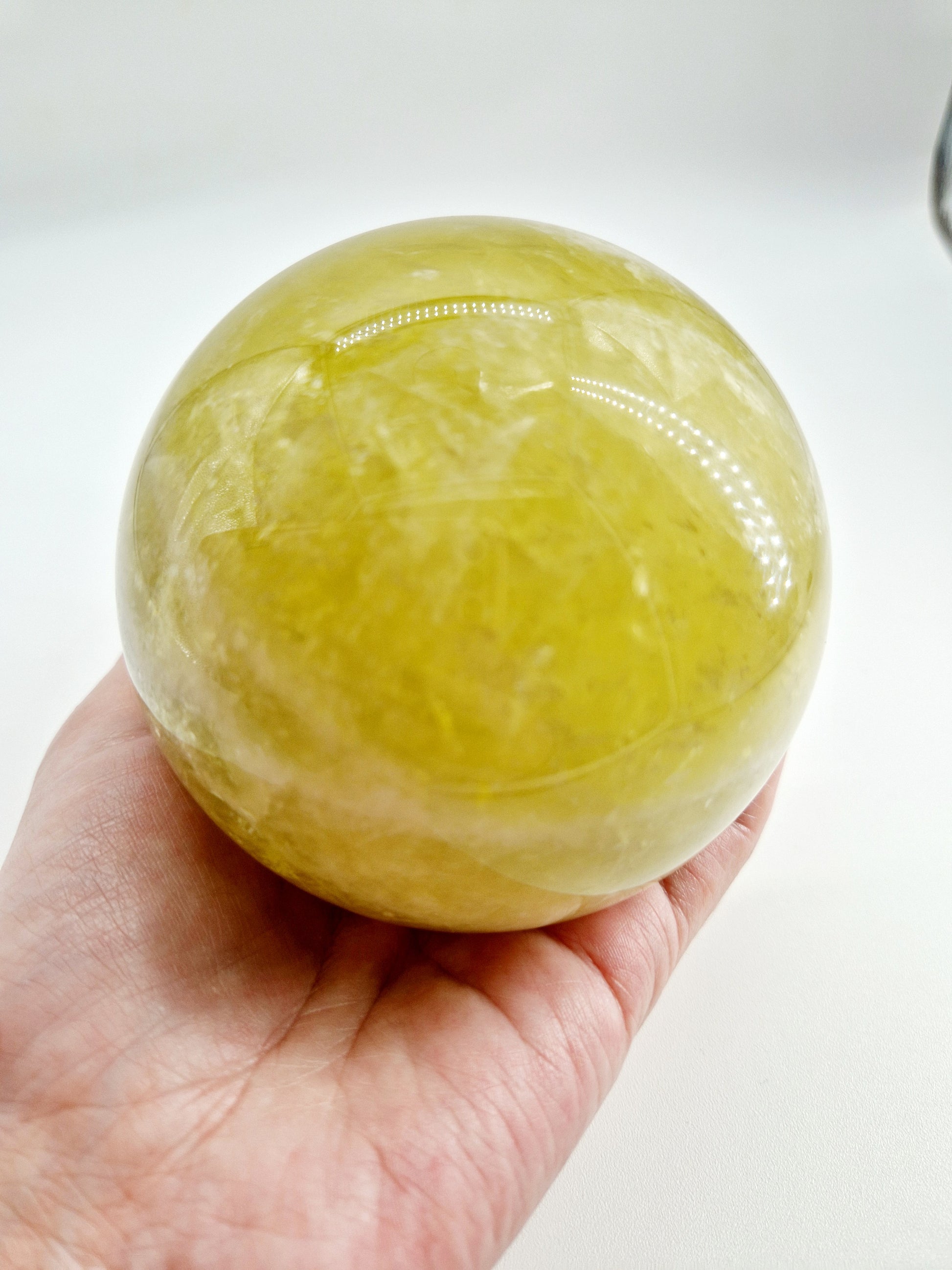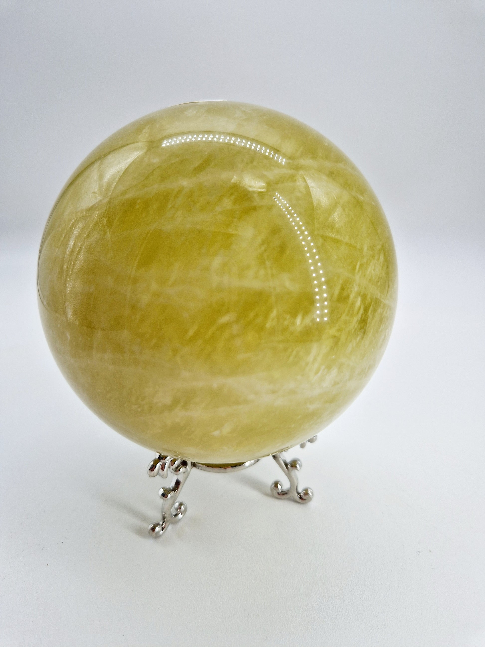 Discover the vibrant energy of this large yellow citrine sphere. This stone promotes abundance, joy, and creativity. Perfect for home décor or a meaningful gift.
